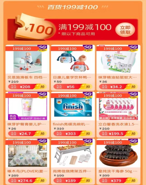 進(jìn)入“真快樂”APP自營百貨618大促“滿199減100”專區(qū),食品酒水、家居日用、美妝個(gè)護(hù)、母嬰玩具四大品類多款商品超級(jí)劃算,多維度滿足大家的需求。