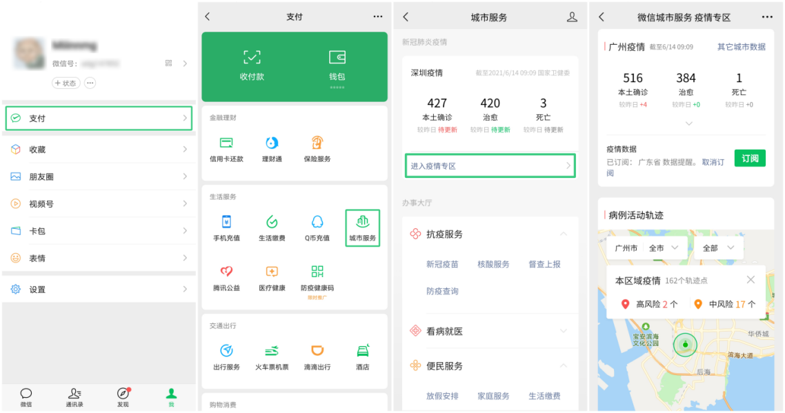 讀特客戶端·深圳新聞網(wǎng)2021年6月16日訊 (記者 田志強)端午期間,為減少疫情傳播風(fēng)險,廣東市民紛紛響應(yīng)號召實行就地過節(jié),落實非必要不出省的相關(guān)要求。為進一步助力廣東及全國人民抗疫,為市民提供準(zhǔn)確疫情資訊及抗疫服務(wù),近日,微信更新城市服務(wù)疫情專區(qū),支持查看疫情數(shù)據(jù)、病例活動軌跡、疫情資訊以及接入抗疫服務(wù)。全國用戶打開“我-支付-城市服務(wù)-疫情專區(qū)”,即可快速觸達各類疫情相關(guān)服務(wù)。