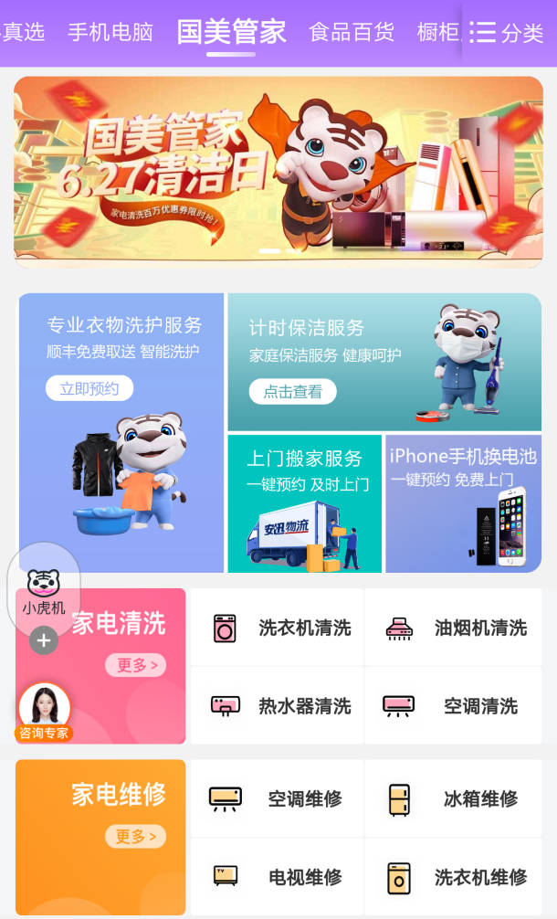國美管家服務(wù)始于2016年,當(dāng)時主要聚焦于家電生活上門服務(wù),業(yè)務(wù)涵蓋家電清洗保養(yǎng)、維修、回收、手機(jī)維修與回收五大板塊,率先實行了高于行業(yè)標(biāo)準(zhǔn)的26分鐘快速響應(yīng),并通過定期推出惠民清潔活動降低用戶使用成本,適時解決了后服務(wù)市場上門慢、服務(wù)高、品質(zhì)差等亂象問題,呈上了98%用戶滿意率的高分答卷。
