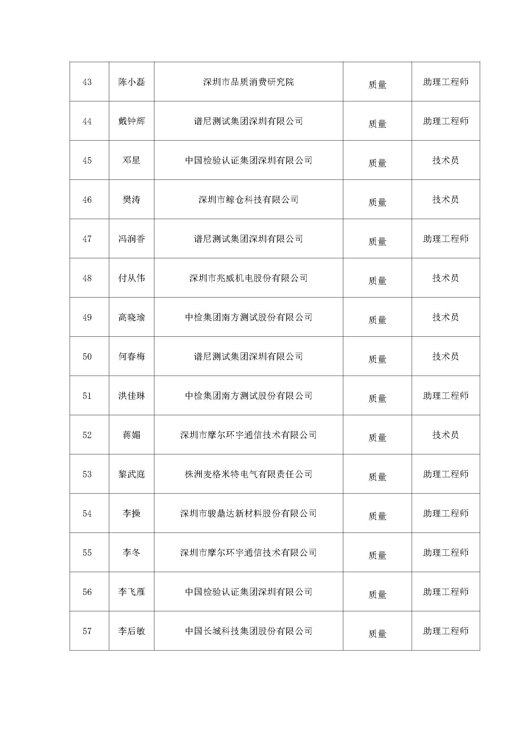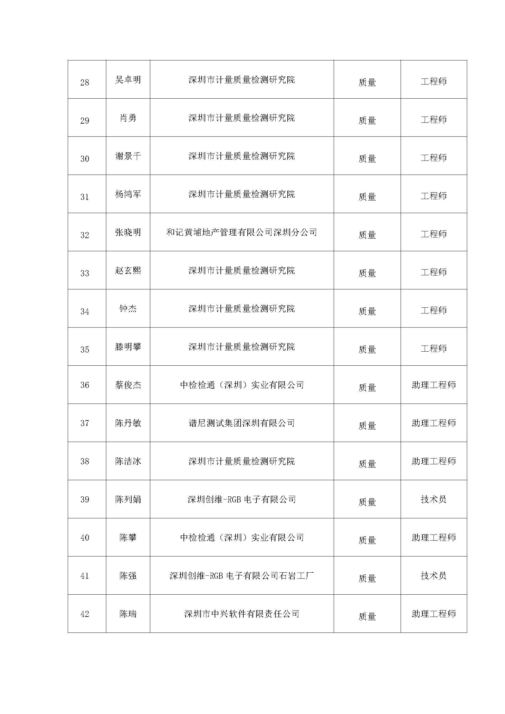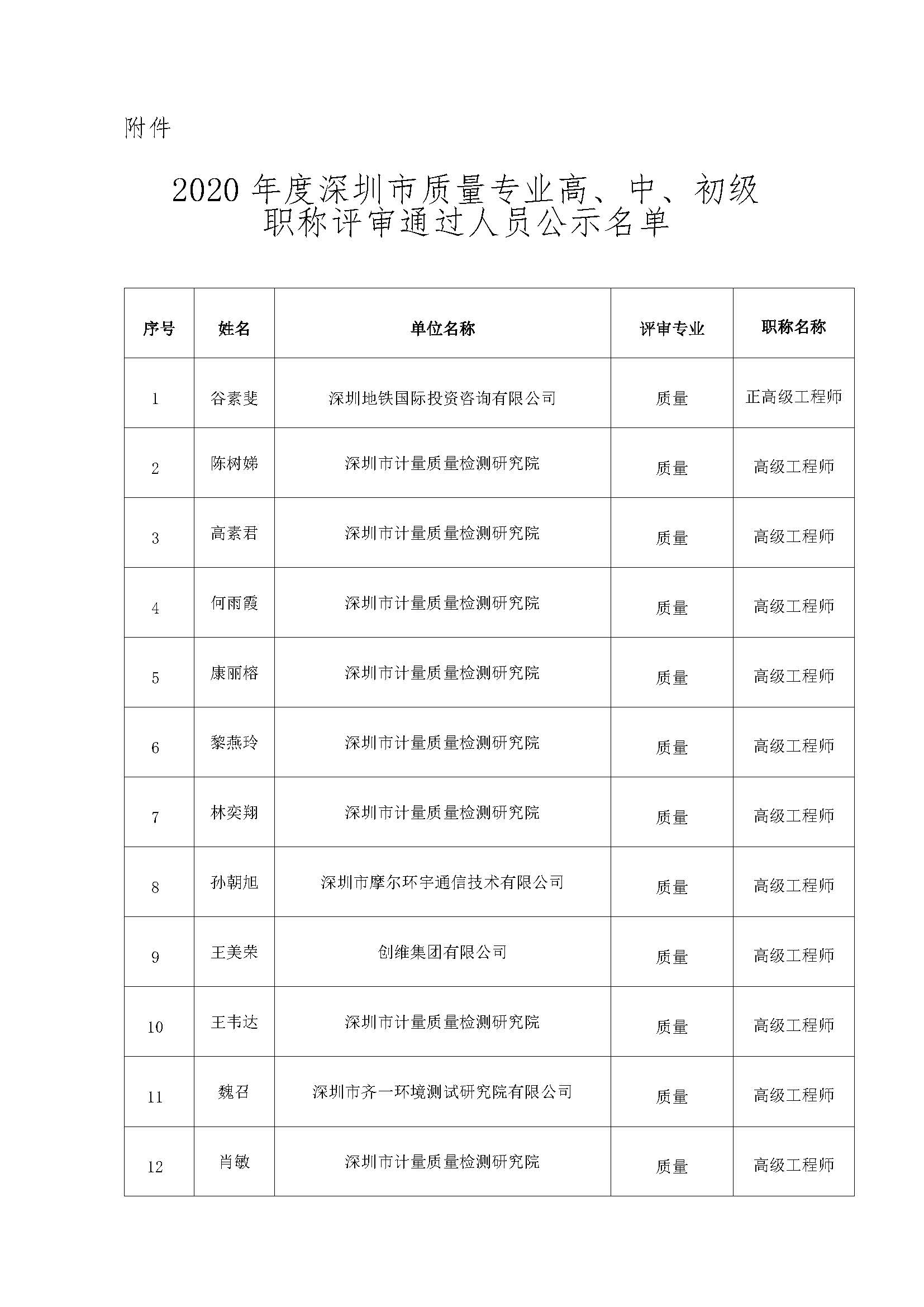 附件:2020年度深圳市質量專業(yè)高、中、初級職稱評審通過人員公示名單