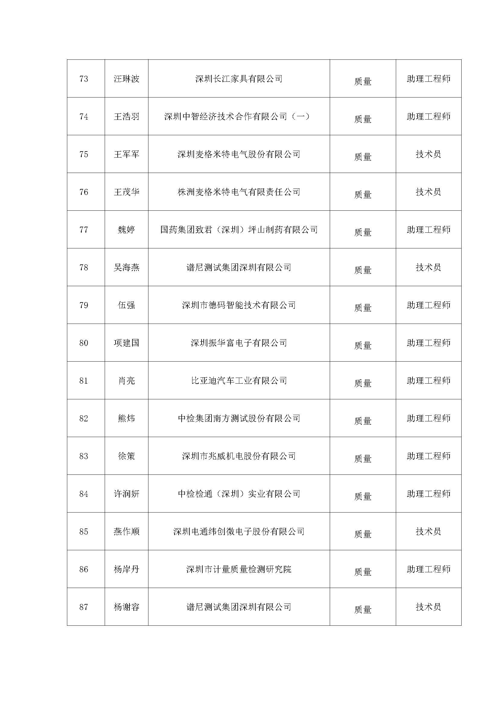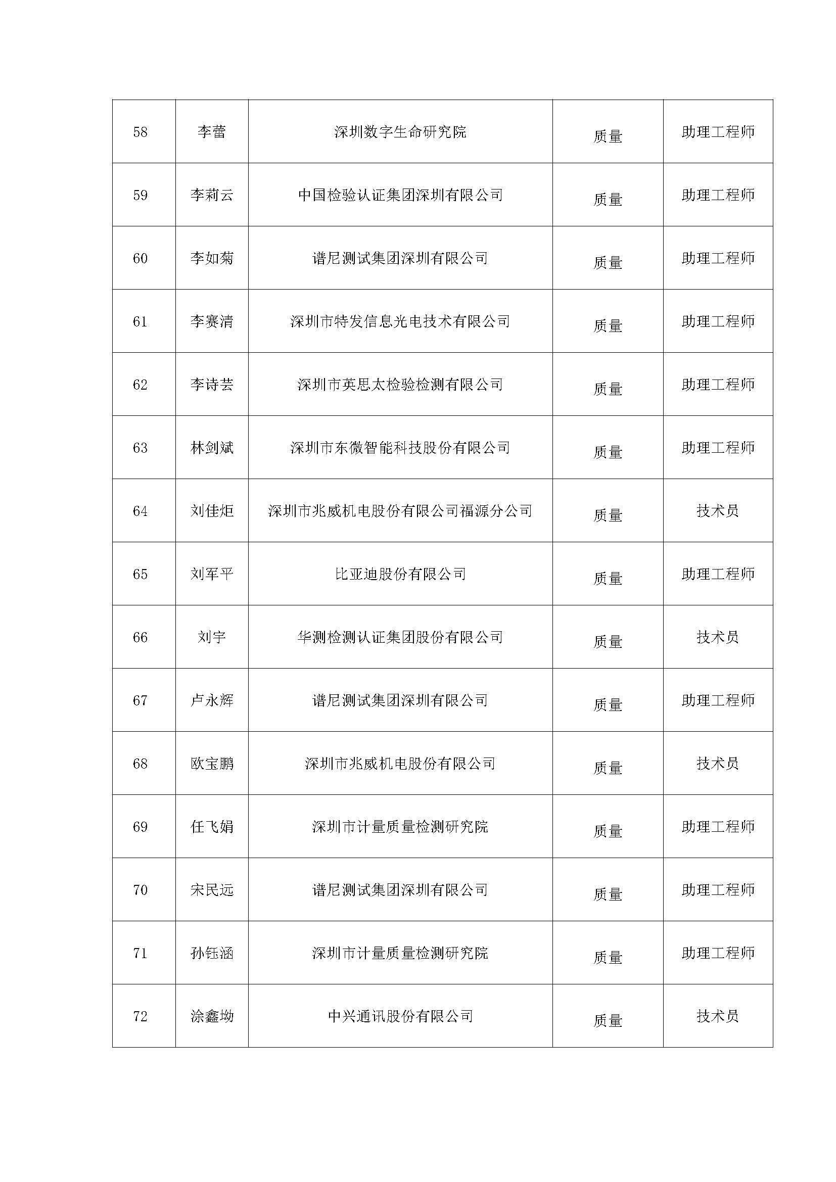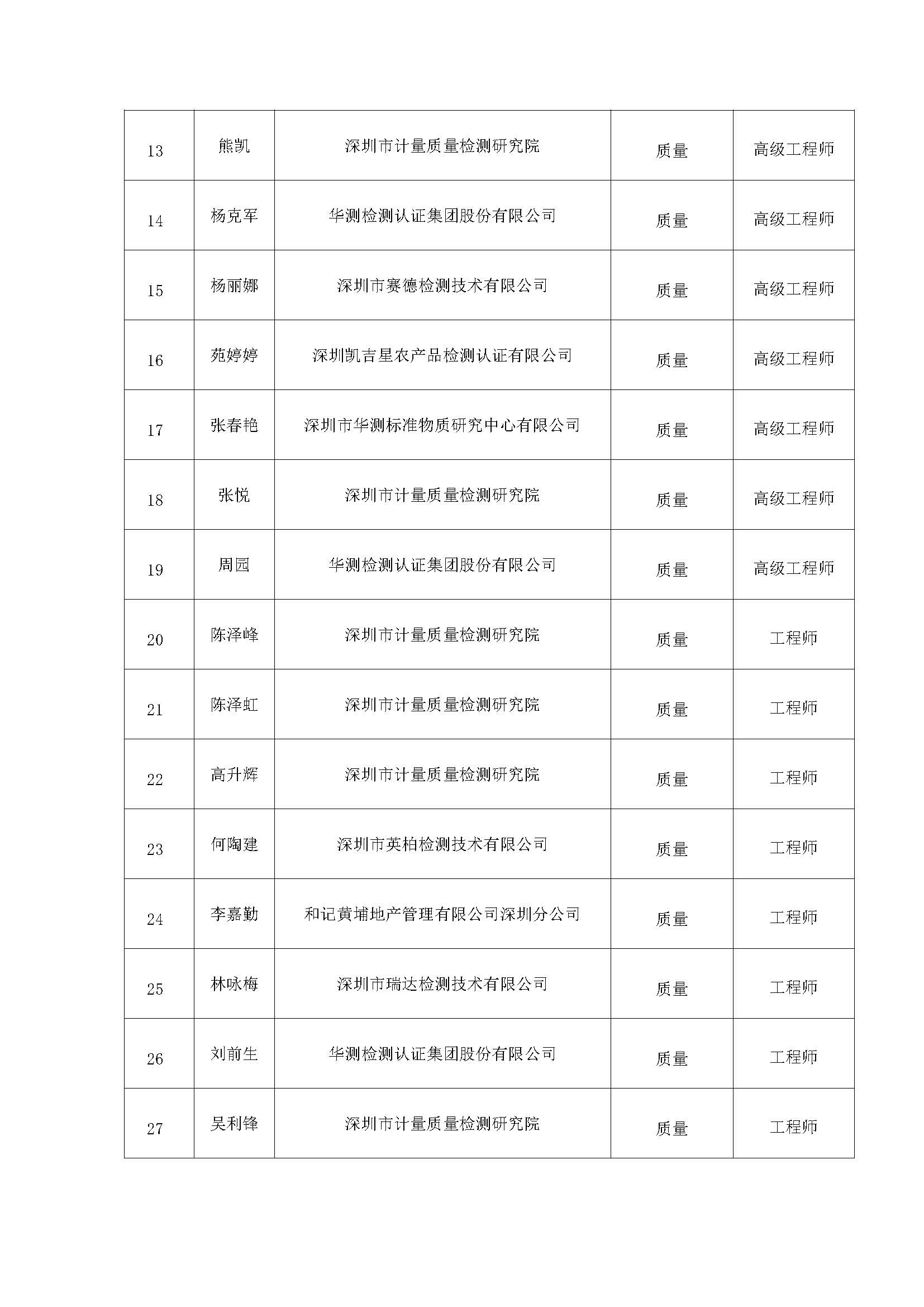 附件:2020年度深圳市質量專業(yè)高、中、初級職稱評審通過人員公示名單