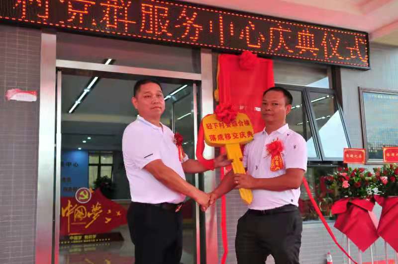 在落成典禮中,深圳安宏基控股集團(tuán)有限公司彭康輝董事將大樓辦公鑰匙移交給硁下村黨支部書記彭志康。村支書彭志康、五云鎮(zhèn)慈善會會長彭志響一起贈牌匾給深圳安宏基控股集團(tuán)有限公司彭康輝董事。