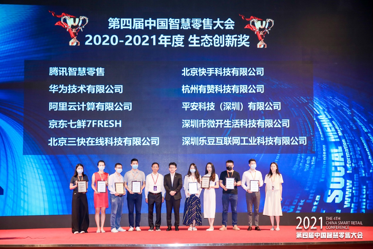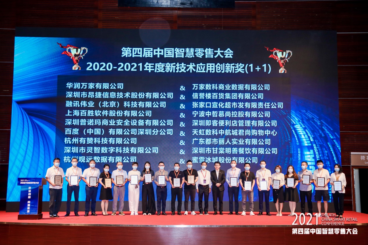 大會開幕式上頒發(fā)“2020-2021年度智慧零售系列大獎”,大會組委會從行業(yè)新技術(shù)應(yīng)用創(chuàng)新;經(jīng)營、商業(yè)、組織、管理、服務(wù)等模式創(chuàng)新;全渠道、全產(chǎn)業(yè)鏈、全生產(chǎn)要素賦能等生態(tài)創(chuàng)新;領(lǐng)軍者推動智慧零售創(chuàng)新發(fā)展等四個(gè)維度,共頒發(fā):新技術(shù)應(yīng)用創(chuàng)新獎、模式創(chuàng)新獎、生態(tài)創(chuàng)新獎、創(chuàng)新人物獎四大獎項(xiàng)。華潤萬家、靈智數(shù)科、有贊、樂信等企業(yè)獲此榮譽(yù),天虹股份譚曉華、百果園焦岳等人獲得創(chuàng)新人物獎。