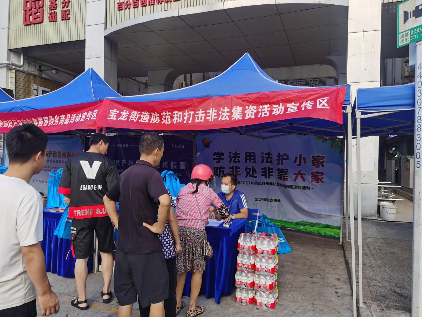 讀特客戶端·深圳新聞網(wǎng)2021年9月14日訊 (記者 田志強(qiáng) 通訊員 梁意)為提高廣大群眾對非法集資、非法傳銷及假冒偽劣商品的風(fēng)險(xiǎn)防范意識和辨別能力,給居民的“錢袋子”上一把安全鎖,9月9日下午,寶龍街道經(jīng)濟(jì)服務(wù)辦公室組織開展打擊非法集資、打擊非法傳銷、打擊侵犯知識產(chǎn)權(quán)與制售假冒偽劣商品進(jìn)園區(qū)宣傳活動(dòng)。