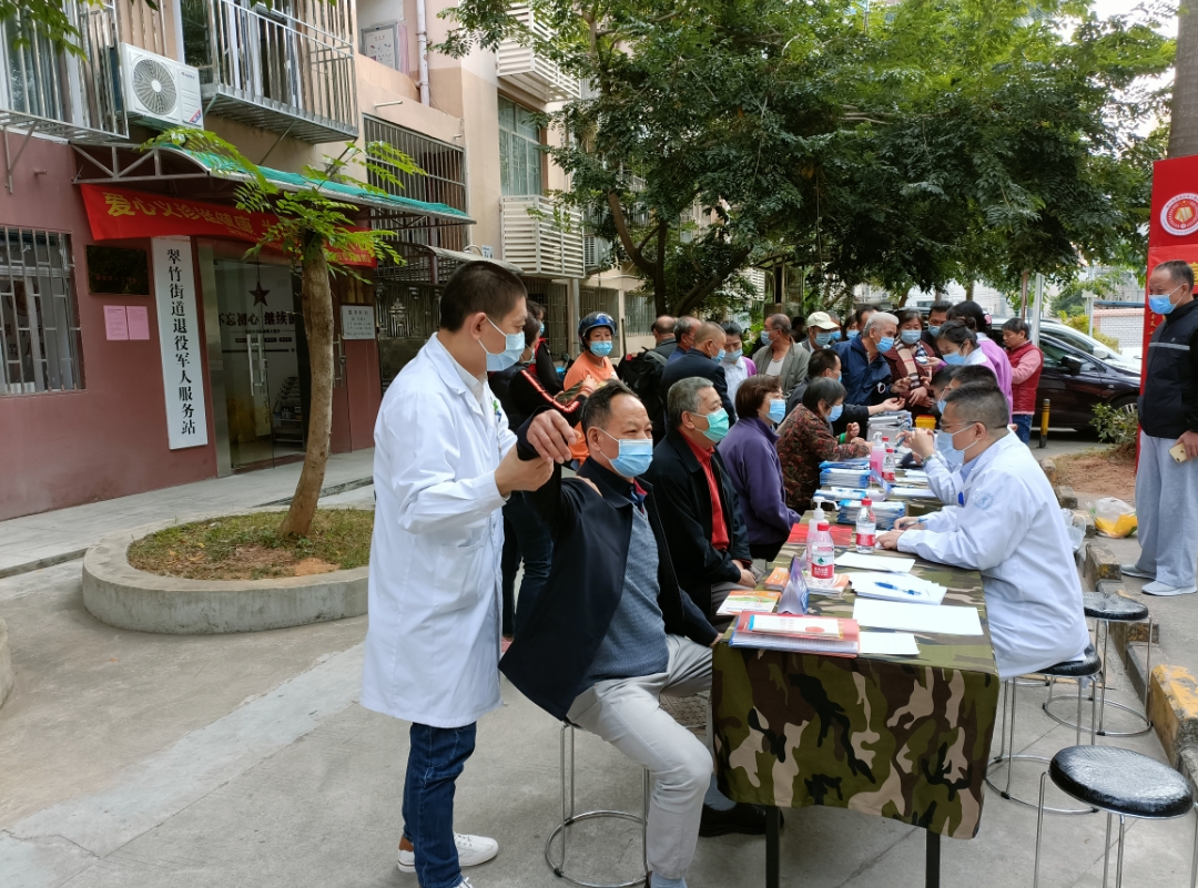 12月19日上午,深圳市人民醫(yī)院疼痛科11名專家與護(hù)士攜帶血壓計(jì)、血糖儀、聽(tīng)診器、理療儀等儀器到街道退役軍人服務(wù)站開展“愛(ài)心義診送健康,為民服務(wù)暖人心”關(guān)愛(ài)退役軍人義診活動(dòng)。為防范疫情風(fēng)險(xiǎn),服務(wù)站將健康服務(wù)分區(qū)域并安排工作人員查驗(yàn)健康碼、行程碼、測(cè)體溫,參與人員須佩戴口罩方能進(jìn)入活動(dòng)現(xiàn)場(chǎng)。在服務(wù)站門口通風(fēng)處設(shè)置血糖與血壓測(cè)量處、專家醫(yī)生坐診處,在老兵活動(dòng)室開展健康知識(shí)講座,在黨建活動(dòng)室和老兵談心室開展身體理療服務(wù)。所有服務(wù)同時(shí)開展,退役軍人和居民自主決定參與順序,避免扎堆。