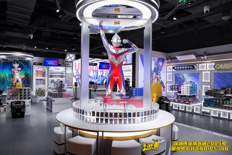 卡游動漫一貫以來打造親子互動體驗的愿景,在“趣發(fā)現(xiàn)、去成就”的道路上始終前進,不斷為每一個卡牌愛好者和親子家庭帶來更多的歡樂、營造更多的幸福和構(gòu)筑更多的溫暖。作為城市首家線下直營店的卡游北京富力廣場店和卡游深圳卓悅中心店就是典型代表,他們不僅完美繼承了如“奧特曼1:1等身立像圓桌”和“英雄對決專區(qū)”等興趣社交區(qū)域,還配合商場“新時尚、新生活、新主張”的理念,在多種玩法的加持下,將藝術(shù)、美學、生活融于一體,擁有無限的探索可能。