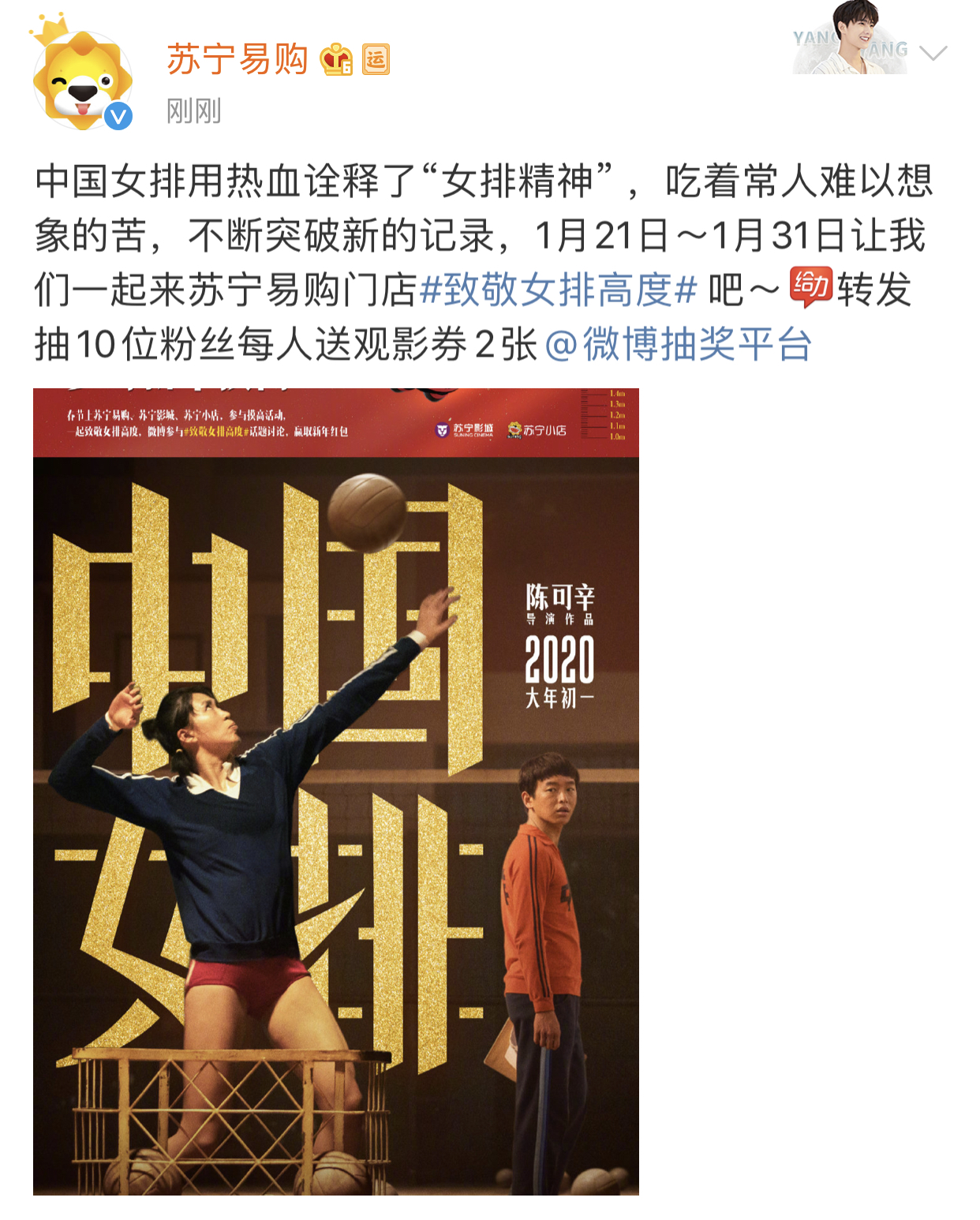 1月17日,蘇寧正式官宣成為電影《中國(guó)女排》的獨(dú)家電商合作平臺(tái)。據(jù)悉,這是年貨節(jié)期間,蘇寧在繼星光大賞、“奇妙年貨吐槽大會(huì)”和《愛(ài)情公寓5》后,合作的又一熱門(mén)IP。