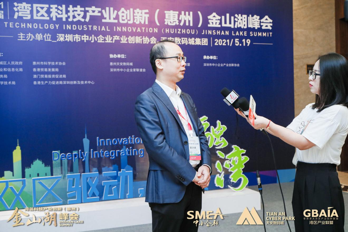 近日,由深圳市中小企業(yè)產(chǎn)業(yè)創(chuàng)新協(xié)會、天安數(shù)碼城集團(tuán)聯(lián)合主辦的“雙區(qū)驅(qū)動·深度融灣”2021首屆灣區(qū)科技產(chǎn)業(yè)創(chuàng)新(惠州)金山湖峰會在惠州市惠城區(qū)康帝國際酒店如期舉行。峰會當(dāng)天,香港生產(chǎn)力促進(jìn)局內(nèi)地附屬公司總經(jīng)理賀俊強(qiáng)出席活動,并接受記者采訪。
