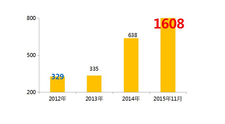 隊伍發(fā)展:2012-2015年,新華深分組織不斷擴(kuò)大。截至2015年11月,個險人力達(dá)1608人,較2012年增長近5倍。