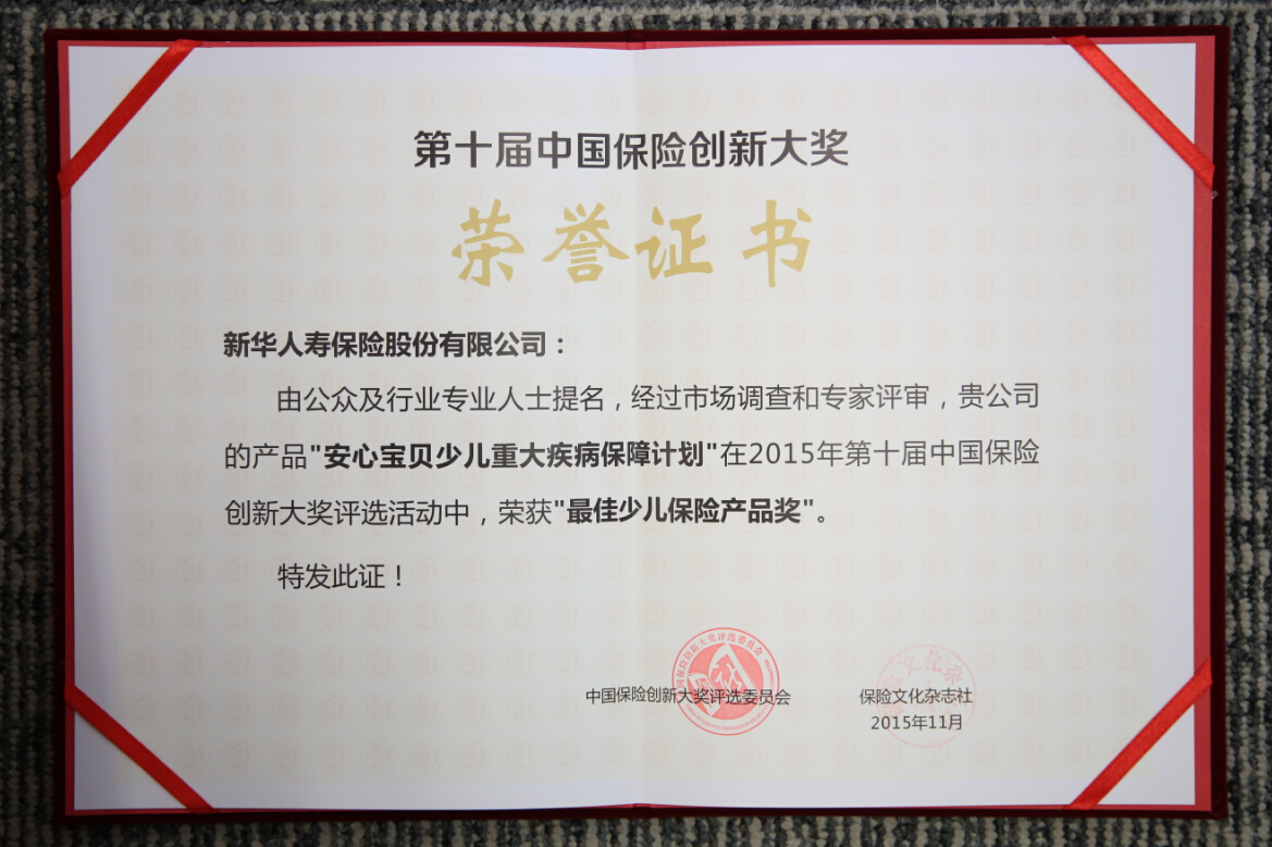 2015年最佳少兒保險產(chǎn)品獎