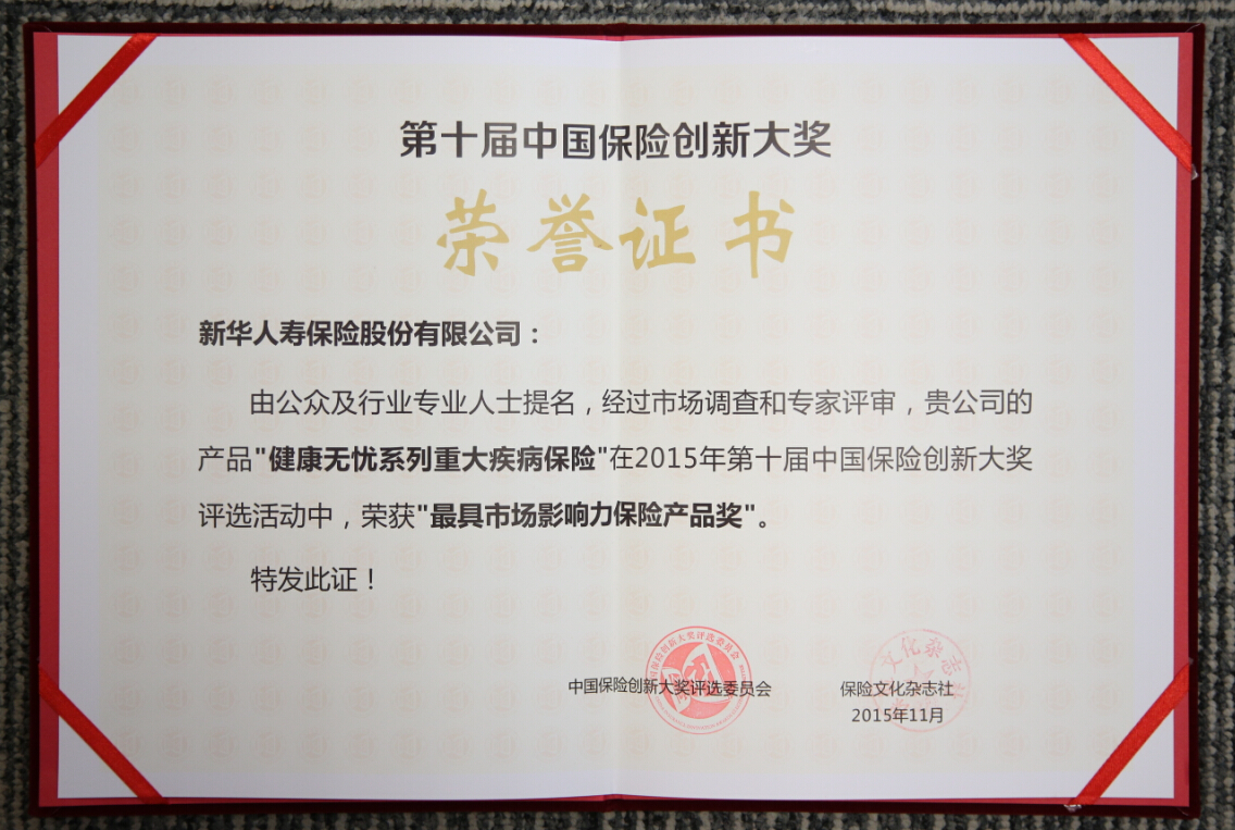 2015最具市場影響力保險產(chǎn)品獎