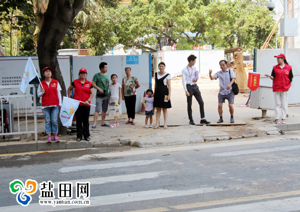 周末的深圳,一大早就艷陽(yáng)高照,氣象部門早早就發(fā)出了高溫橙色預(yù)警,但高溫天氣絲毫也沒(méi)有阻擋“微友”開展“文明微行動(dòng)”活動(dòng)的決心。上午十時(shí),記者在現(xiàn)場(chǎng)看到,近百名身著紅馬甲的“微友”已經(jīng)在區(qū)政府,新一佳,郵局等人流量集中的十字路口開展交通文明勸導(dǎo)活動(dòng)。盡管酷暑難耐,來(lái)往路人顯得行色匆匆,但在“微友”們的交通指揮和勸導(dǎo)下,車輛主動(dòng)禮讓行人,行人自覺(jué)地遵守秩序,各個(gè)十字路口一片秩序井然。