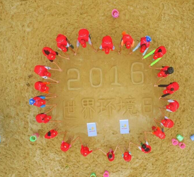 在徐賢、姚軍的鼓勵(lì)和幫助下,劉曉紅組織了第一場(chǎng)文明微行動(dòng)——2016年6月5日大梅沙沙灘世界環(huán)境日宣傳。她為此活動(dòng)制定了在沙灘砌立體字宣傳環(huán)保的方案,這看起來(lái)簡(jiǎn)單實(shí)際的方案對(duì)于劉曉紅她們這些第一次堆沙字的自愿者來(lái)說(shuō)難度可不小?;顒?dòng)當(dāng)天,當(dāng)她和微友們齊心協(xié)力把大家心中的“2016世界環(huán)境日”這幾個(gè)大字成功堆砌出來(lái),向沙灘的游客宣傳“人人參與環(huán)保,世界才會(huì)更加美好”時(shí),每位參與的志愿者都興奮得圍著“2016世界環(huán)境日”在沙灘上跳起來(lái)。