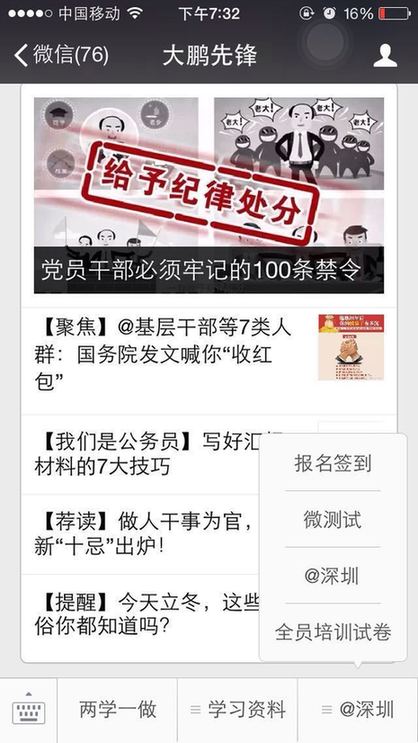 ??? 截止到11月7日,大鵬新區(qū)已有大鵬先鋒、大鵬新區(qū)社區(qū)家園網(wǎng)、大鵬公共事業(yè)、筑夢大鵬、、大鵬辦事處等多家政府官方微信公眾號入駐了@深圳。