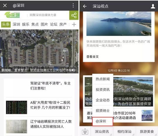 @深圳本質(zhì)是手機(jī)網(wǎng)站,可嵌入在微信公眾號底部菜單欄中(也可嵌入APP客戶端中),且其采用了最新H5編碼技術(shù),可左劃右劃更換頻道,也可上劃下劃翻看內(nèi)容,
