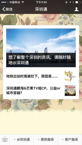 “@深圳通”是“@深圳”為深圳通量身定做的專屬頁(yè)面,根據(jù)“深圳通”生產(chǎn)的內(nèi)容,進(jìn)行整合優(yōu)化,選取與“深圳通”息息相關(guān)的新聞資訊。