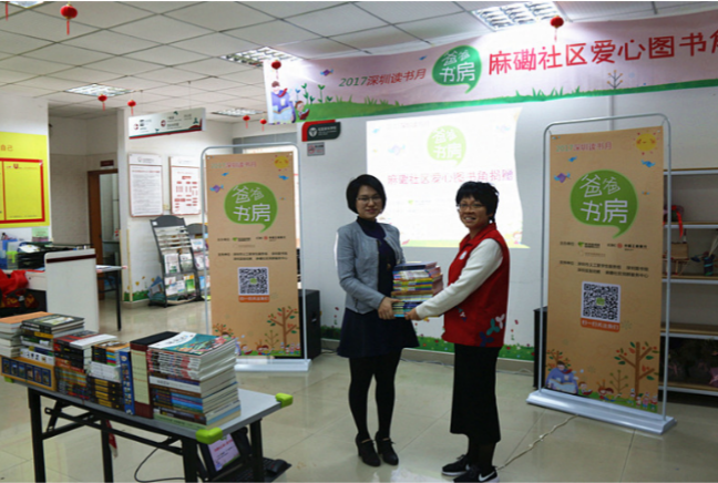 據介紹,為建設“學習型社區(qū)”,麻磡社區(qū)已經建立了“四點半學校閱讀區(qū)”閱讀室,但由于社區(qū)原有圖書陳舊,急需一批新書豐富圖書資源來滿足社區(qū)孩子們的閱讀需求。了解到這一信息后,“爸爸書房”聯合中國工商銀行深圳分行、深圳市閱讀聯合會采購了一批全新的兒童讀物送到麻磡社區(qū),建立“爸爸書房愛心圖書角”,助力社區(qū)圖書室建設。