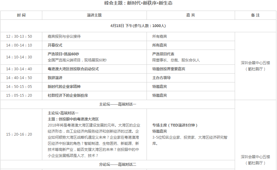 2018總裁創(chuàng)新峰會以“新時代、新秩序、新生態(tài)”為主題,秉承“全球智慧、共享發(fā)展”理念,以全球化視野的戰(zhàn)略性眼光,順勢大眾創(chuàng)業(yè)、萬眾創(chuàng)新和粵港澳大灣區(qū)的戰(zhàn)略機遇,積極推動建設新時代企業(yè)命運共同體,通過“主旨演講+高端對話+資本對接會”,圍繞科技、產(chǎn)業(yè)、金融,關注創(chuàng)新創(chuàng)業(yè)與創(chuàng)投,邀請政界領袖、中外知名企業(yè)總裁,500強企業(yè)商學院院長、知名投資家、智庫專家、商會協(xié)會代表、財經(jīng)媒體等,共同探討新經(jīng)濟背景下中國企業(yè)可持續(xù)發(fā)展的機遇與挑戰(zhàn)。