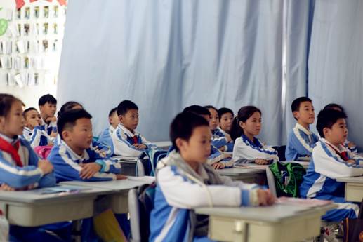 學(xué)生認(rèn)真地跟著王翔云老師拍打節(jié)奏唱歌