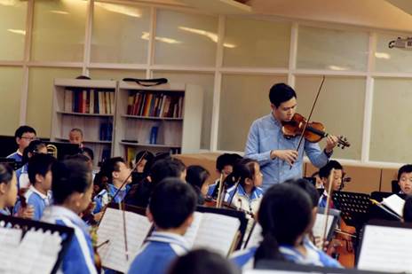 在王翔云成為丹堤實(shí)驗(yàn)學(xué)校的一員之后,就將自己投入到了弦樂團(tuán)的學(xué)生訓(xùn)練中,每天起早貪黑地和孩子們一起訓(xùn)練,甚至利用周末時(shí)間和孩子們待在一起練習(xí)。在和孩子共同努力下,丹堤實(shí)驗(yàn)學(xué)校的弦樂團(tuán)在2016年龍華新區(qū)學(xué)校藝術(shù)展演榮獲一等獎(jiǎng),在2016年廣東提琴文化藝術(shù)節(jié)青少年弦樂邀請(qǐng)賽中獲得銀獎(jiǎng)?!爱?dāng)然,這些成績的獲得也離不開學(xué)校的大力支持,離不開張國明教授等高人的指點(diǎn)。我認(rèn)為小學(xué)階段是人一生中形成德育和美育的重要時(shí)期。我們總會(huì)要求孩子們要形成良好的生活習(xí)慣,我認(rèn)為倒不如讓他們覺得我們現(xiàn)在做的每一件事都是正確的,有意義的,比如在我們的課堂和訓(xùn)練中,我就會(huì)要求他們將譜臺(tái)、椅子、琴盒、琴袋等擺放整齊,現(xiàn)在他們都可以自覺地完成。”