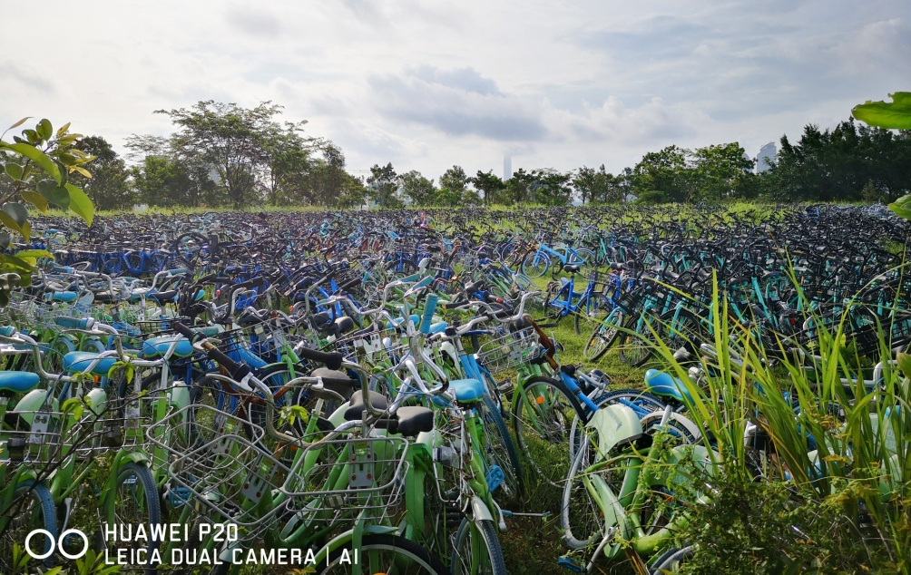 安托山公園內(nèi)堆放的共享單車中,有較大部分來自已停運破產(chǎn)的共享單車公司。有網(wǎng)友對此感到疑惑:“這樣的共享單車該由誰來負責清理?”