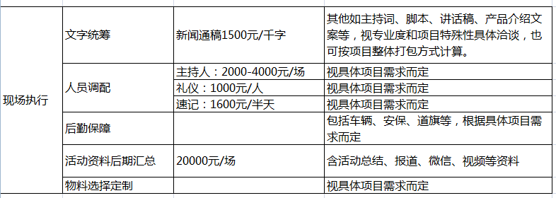 3、后勤保障:舉辦大型活動時(shí),為了保障嘉賓安全,渲染現(xiàn)場氣氛,通常需要有一系列的車輛、安保、道路指引旗幟等工作。深圳新聞網(wǎng)擁有豐富的大型現(xiàn)場活動把控經(jīng)驗(yàn),特別是與相關(guān)部門,如城管、公安、交通等主管職能機(jī)構(gòu)溝通、協(xié)調(diào)、策劃的能力,保障活動安全,萬無一失。具體費(fèi)用需要依據(jù)項(xiàng)目的規(guī)模、時(shí)長、等級來具體商議。