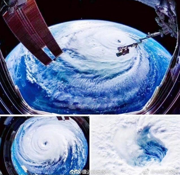 中國氣象局今日上午通過微博辟謠稱,這幾張圖片是NASA宇航員在太空拍攝到的颶風佛羅倫薩,不是“山竹”。