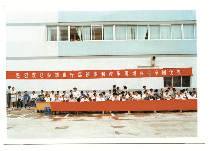 ▲1998年4月21日,中國(guó)人民銀行總行在威豹公司召開(kāi)全國(guó)銀行運(yùn)鈔體制改革現(xiàn)場(chǎng)會(huì)。