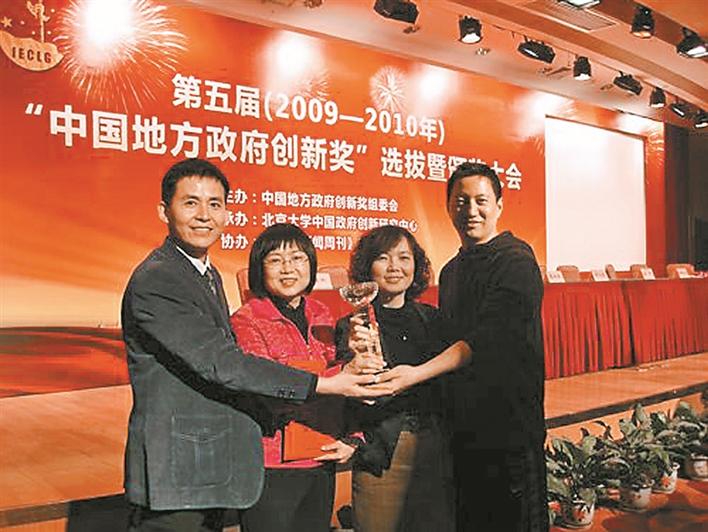 2010年1月17日,深圳社會(huì)組織改革榮獲第五屆“中國地方政府創(chuàng)新獎(jiǎng)”,馬宏(左二)等領(lǐng)取獎(jiǎng)杯。