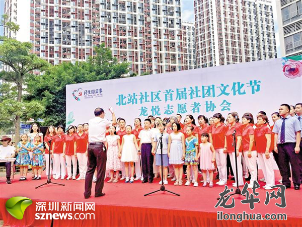 深圳規(guī)模最大保障性住房小區(qū)龍悅居的居民、物業(yè)人員歡唱原創(chuàng)歌曲《龍悅之歌》。