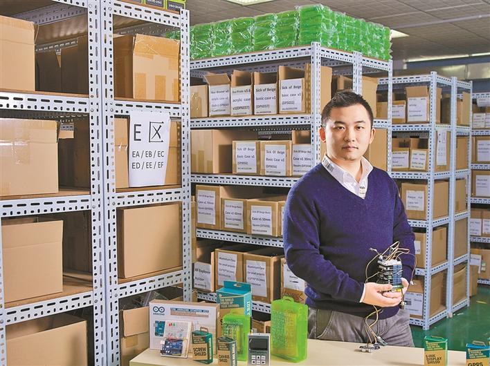 我在大學(xué)甚至更早的時候就深有體會——我有很多想法,但是缺乏必要的技術(shù)去把這個想法實現(xiàn)出來。我在國外的一個開源硬件論壇留言說我的體會,沒想到有那么多創(chuàng)客回饋說有同感,論壇上創(chuàng)客們的積極回應(yīng)讓我看到了商機。我發(fā)現(xiàn),很多硬件模塊因為創(chuàng)客需要的量少,很多工廠不愿意生產(chǎn)。后來,我想到了在國際創(chuàng)客論壇發(fā)帖征集創(chuàng)客們的需求,再到國內(nèi)電子市場搜集硬件加工后發(fā)給創(chuàng)客的點子。于是,我便做起了開源硬件的生意?!盀閯?chuàng)客服務(wù)”,這是我創(chuàng)業(yè)的最初目標(biāo)。
