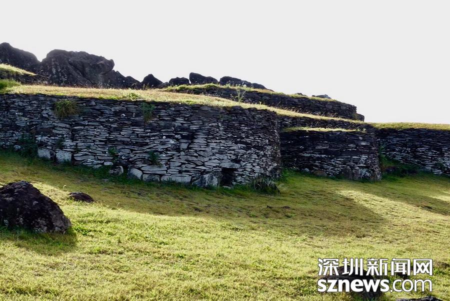 火山口邊沿有古代土著波利尼西亞人輪流值守家園的石砌地堡,他們當時在此守望什么,防止入侵者亦或試圖發(fā)現(xiàn)新的島嶼?這是至今未解之謎。李仁奇   攝