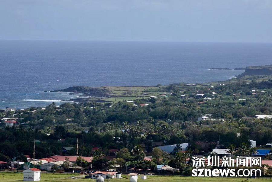 復(fù)活節(jié)島是智利聞名于世的神秘領(lǐng)土。位于東南太平洋上,面積117平方公里,它距圣地亞哥約3000公里,是世界上有人居住的、距離大陸最遠的島嶼,形狀近似三角形,由三座火山組成。李仁奇   攝