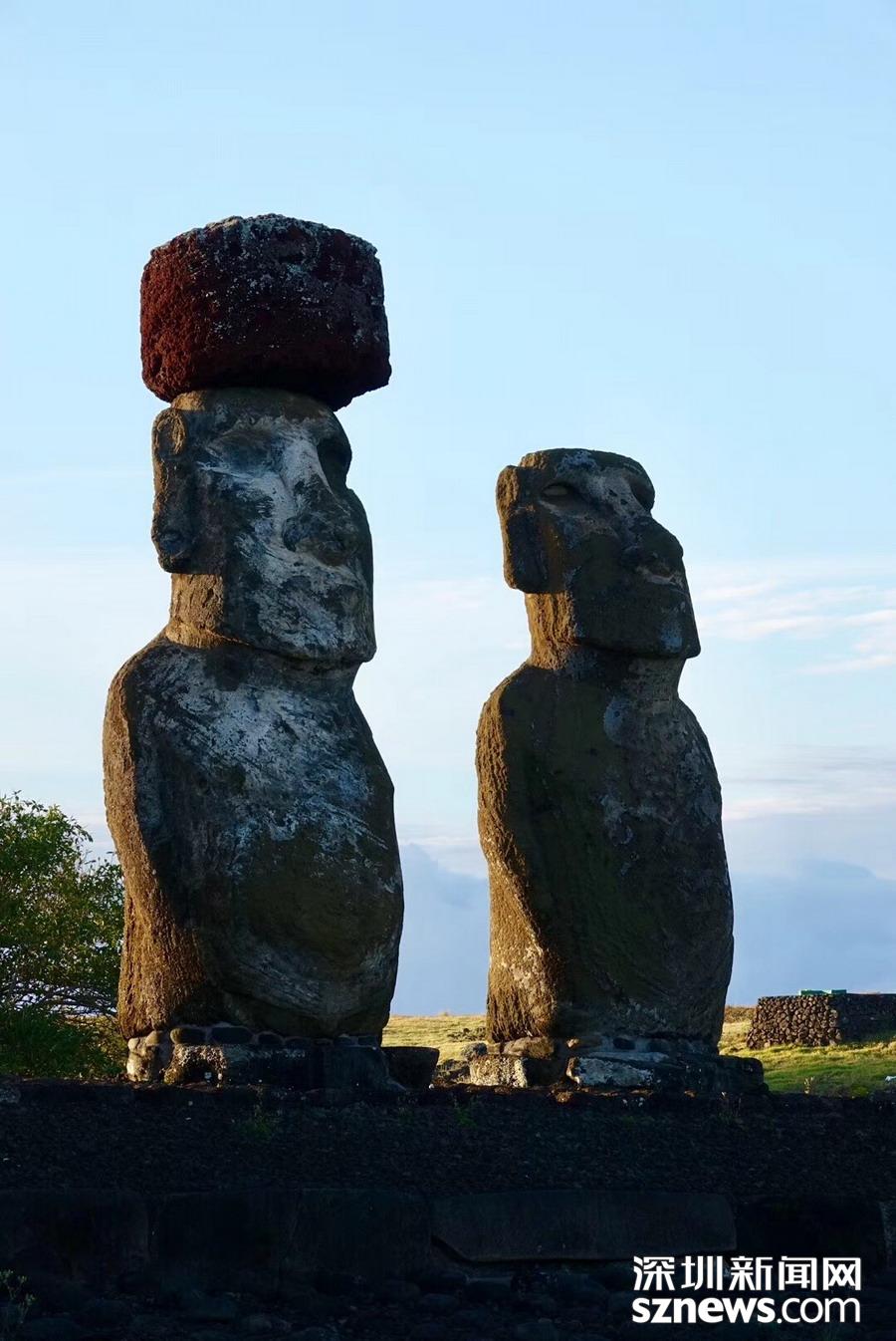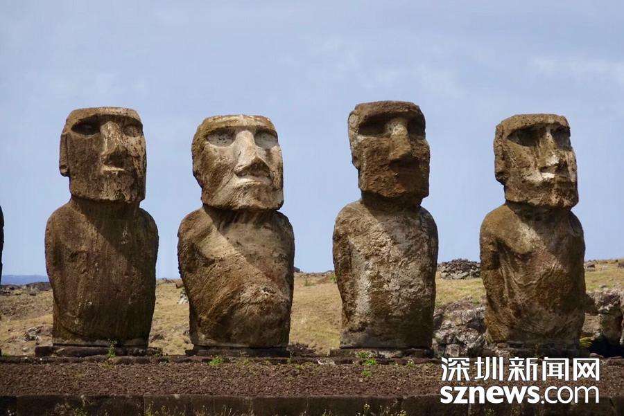 復(fù)活節(jié)島上最著名、最神秘的歷史文明遺跡是巨大的摩艾石像。李仁奇   攝