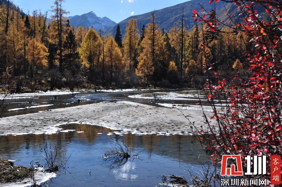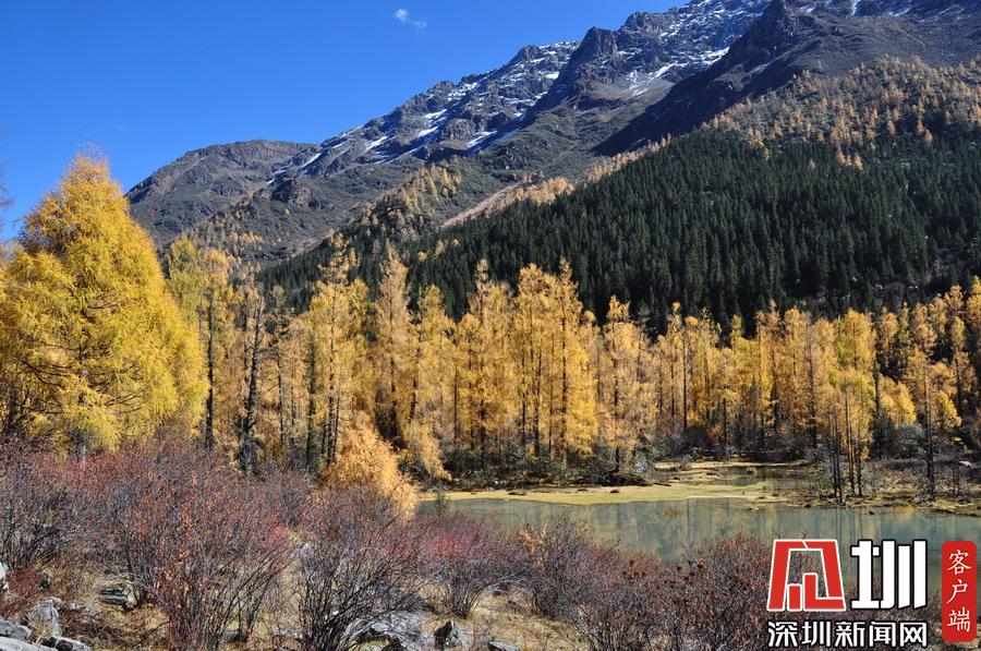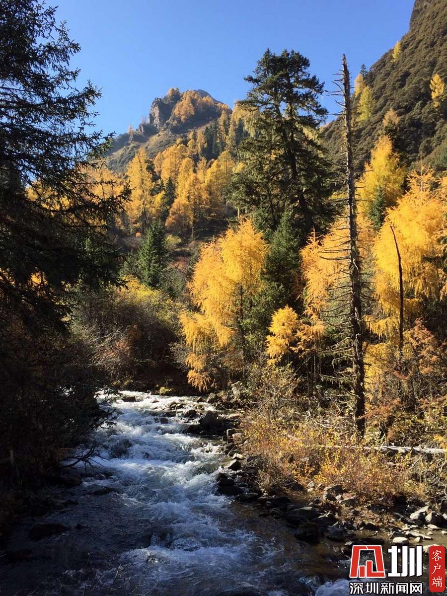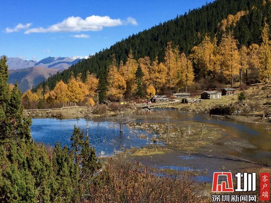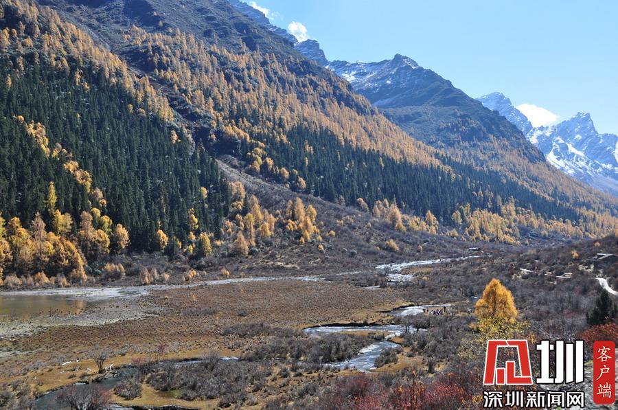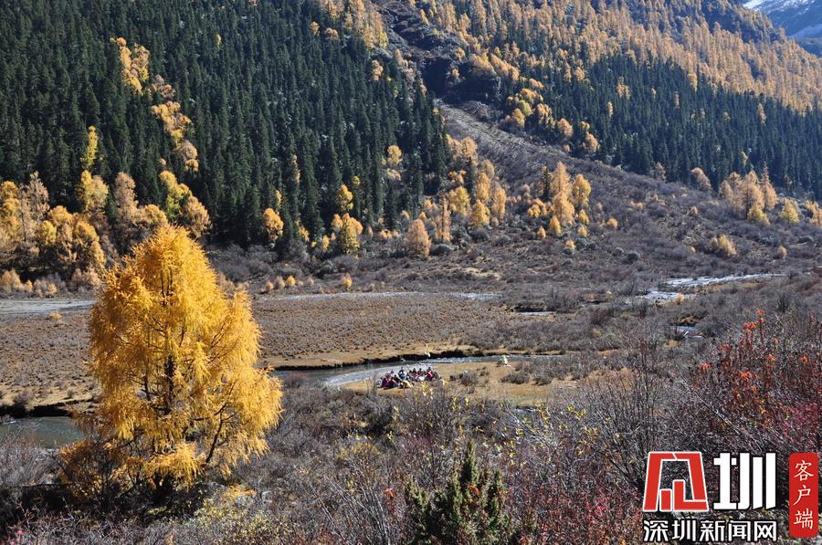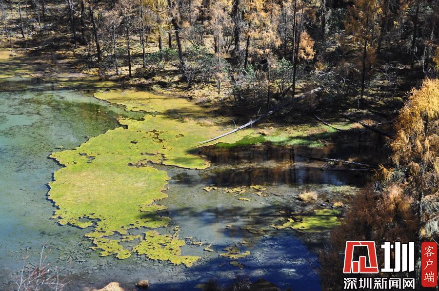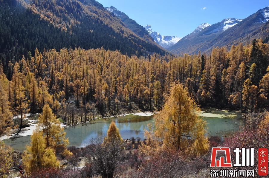 溝里有大片的落葉松、杜鵑和云杉林,雪山、海子、濕地、河流等景觀應(yīng)有盡有,唯獨(dú)沒有公路,只能沿木棧道徒步游覽。李仁奇攝