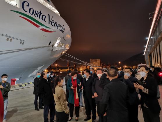 為確保1.26清晨電視電話會議順利召開,郵輪母港工程師連夜趕回公司調(diào)試設(shè)備;港口值班經(jīng)理尹犇接到海關(guān)急需手持式體溫測量儀的消息后,凌晨2點(diǎn)騎自行車前往公司將三臺手持式體溫測量儀交接到海關(guān)人員手中,為海關(guān)排查歌詩達(dá)威尼斯號郵輪旅客體溫做好保障工作,深夜疫情下的街道顯得格外冷情。