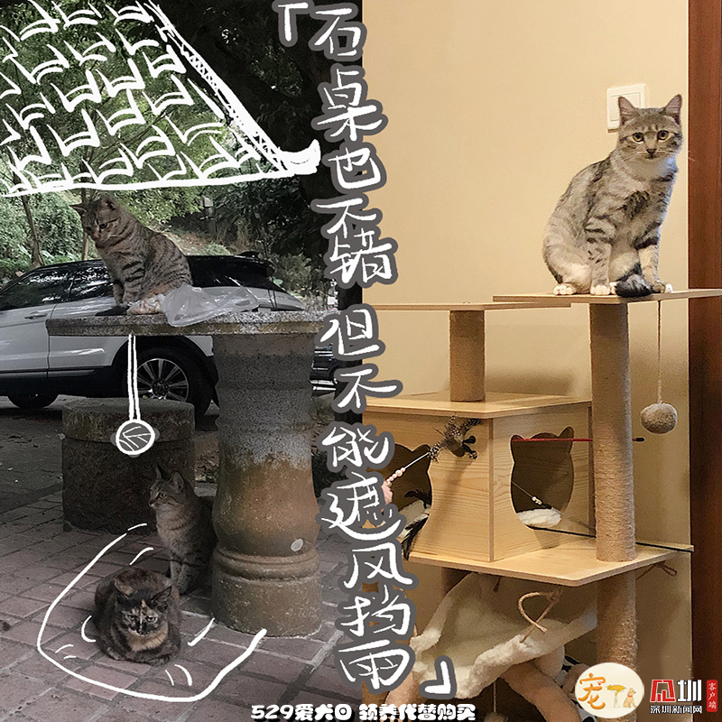 外面的世界再精彩,也比不過(guò)一個(gè)能遮風(fēng)擋雨,沒(méi)有車流、毒藥威脅,三餐穩(wěn)定、四季如春的容身之處,更何況,這里還有比石桌更有趣的貓爬架和比落葉更好玩的小玩具?,F(xiàn)在“高高在上”“作威作?!钡呢堖?,也是花光了一生所有運(yùn)氣,才能在無(wú)法獨(dú)自生存的小時(shí)候,遇見(jiàn)一個(gè)愿意照顧TA一生的“兩腳獸”。