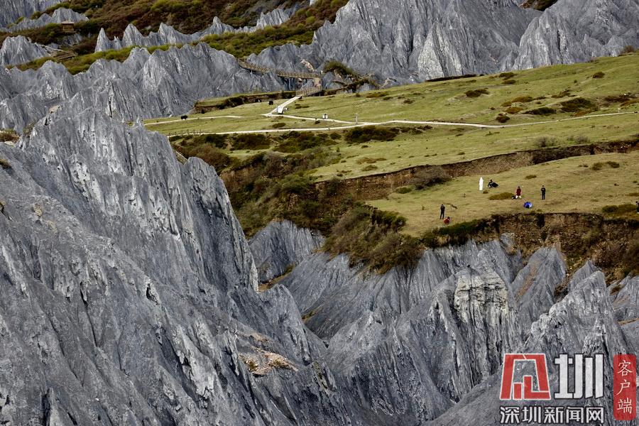 它是3年前開發(fā)建成的網紅景點,全世界獨有的糜棱巖石林,面積4.7平方公里,海拔約3500米,被命名為“中國墨石公園”。李仁奇 攝