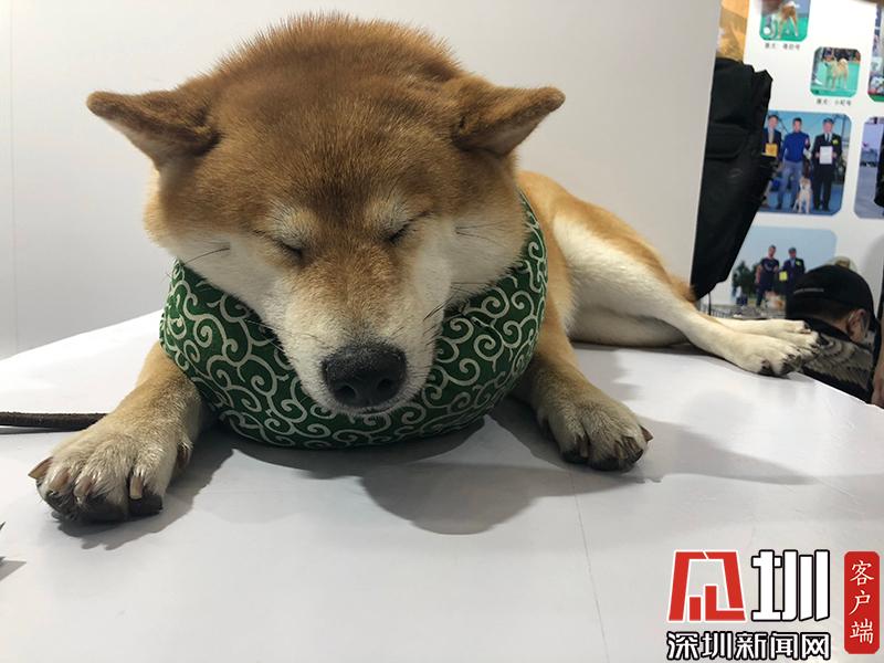參展商的柴犬在打瞌睡。