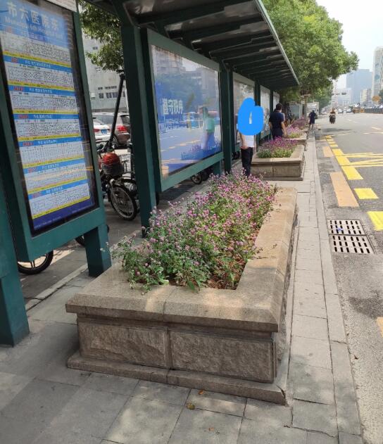 公交站臺前的花壇