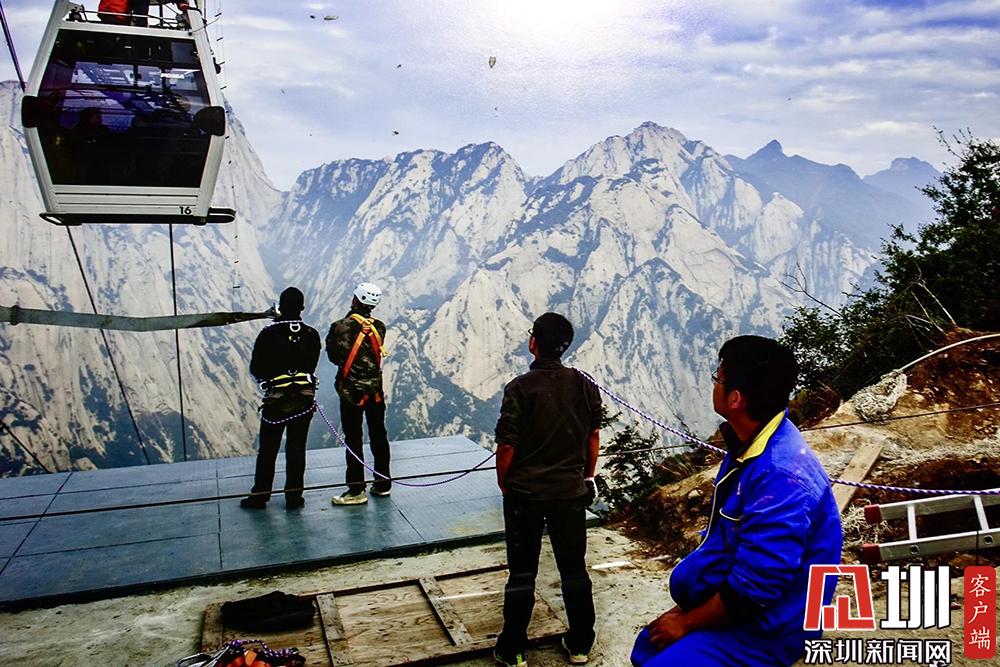 華山西峰的太華索道是迄今為止世界上第一條采取崖壁開鑿硐室站房、兩上兩下的起伏式走向、設(shè)中間站的單線循環(huán)脫掛式索道,總計投資5億余元建設(shè)。李酮攝。