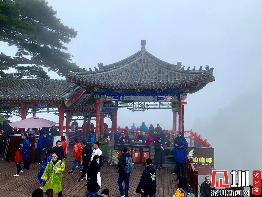 共有72個半懸空洞,道觀20余座,其中玉泉院、都龍廟、東道院、鎮(zhèn)岳宮被列為全國重點道教宮觀,有陳摶、郝大通、賀元希等著名的道教高人。排隊等待參觀的游客。李仁奇攝。