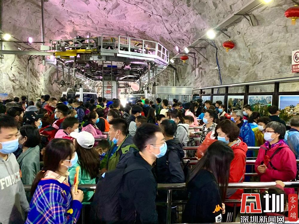 但感覺節(jié)日期間這條索道仍不敷應(yīng)用,游客排隊等候竟長達3小時以上。華山索道一覽。李仁奇攝。