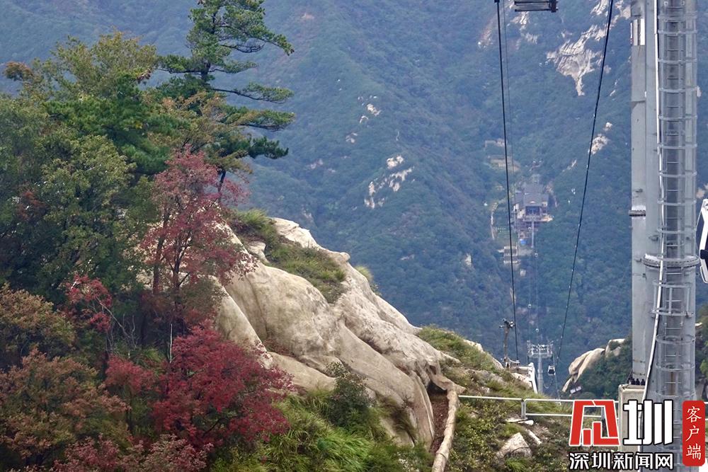 索道設(shè)備由法國波馬公司制造,整體安全與運營系統(tǒng)采用最尖端的客運索道技術(shù)。華山索道一覽。李仁奇攝。