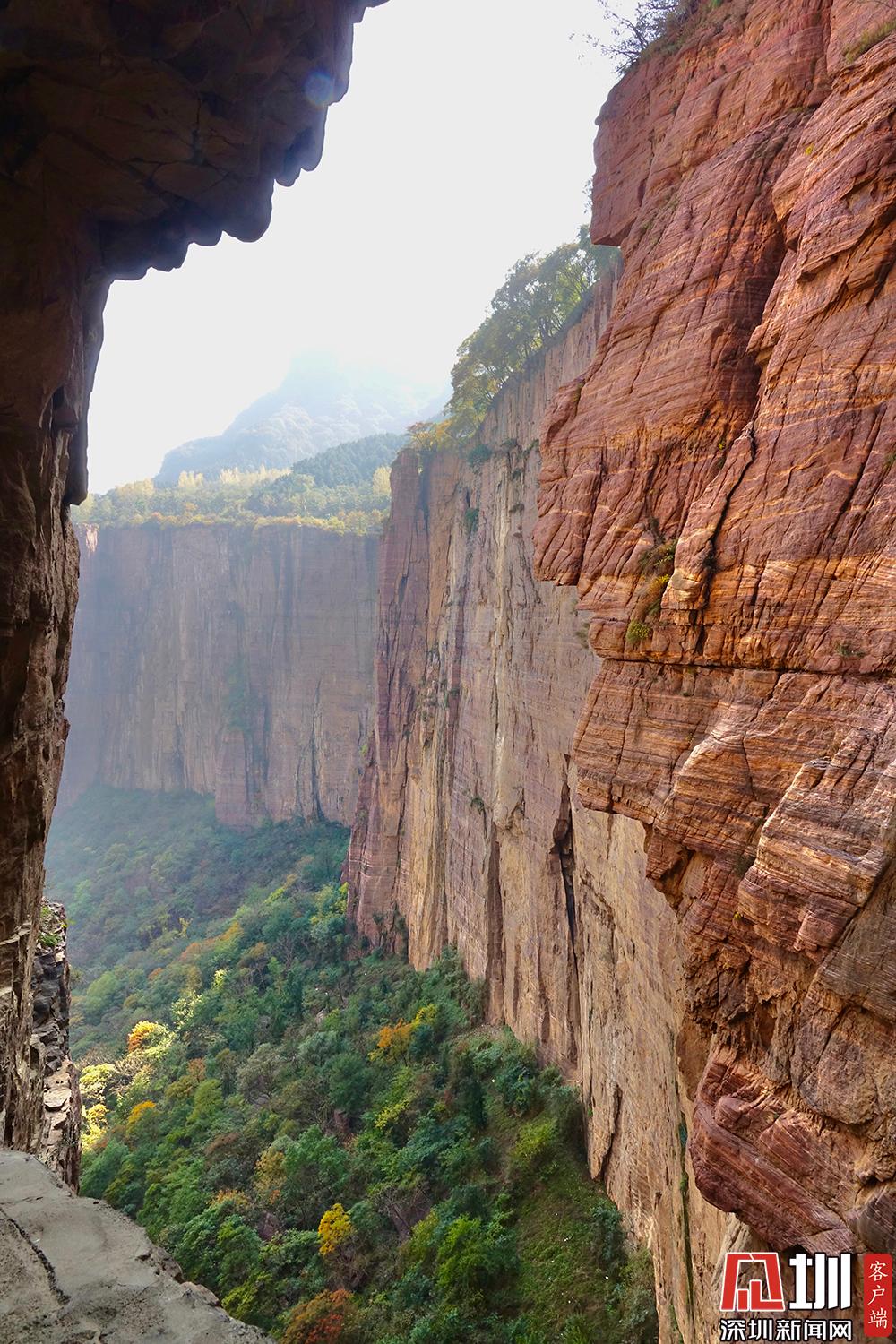 在萬(wàn)仙山大景區(qū)中,郭亮村已成為人氣最為旺盛的景點(diǎn)。圖為萬(wàn)仙山絕壁之景。李仁奇攝