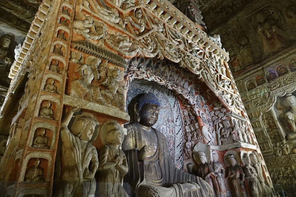 石窟依山開鑿,東西綿延約1公里。存有主要洞窟45個(gè),大小窟龕252個(gè),石雕造像51000余軀,還有部分北魏時(shí)期的壁畫,為中國規(guī)模最大的古代石窟群之一。李仁奇 攝