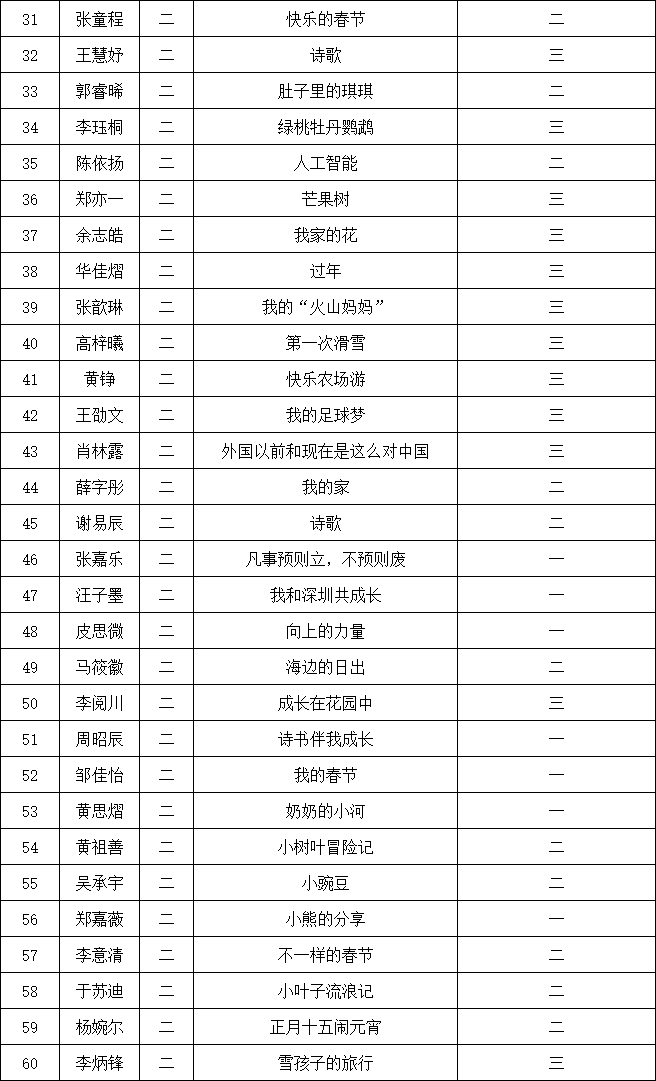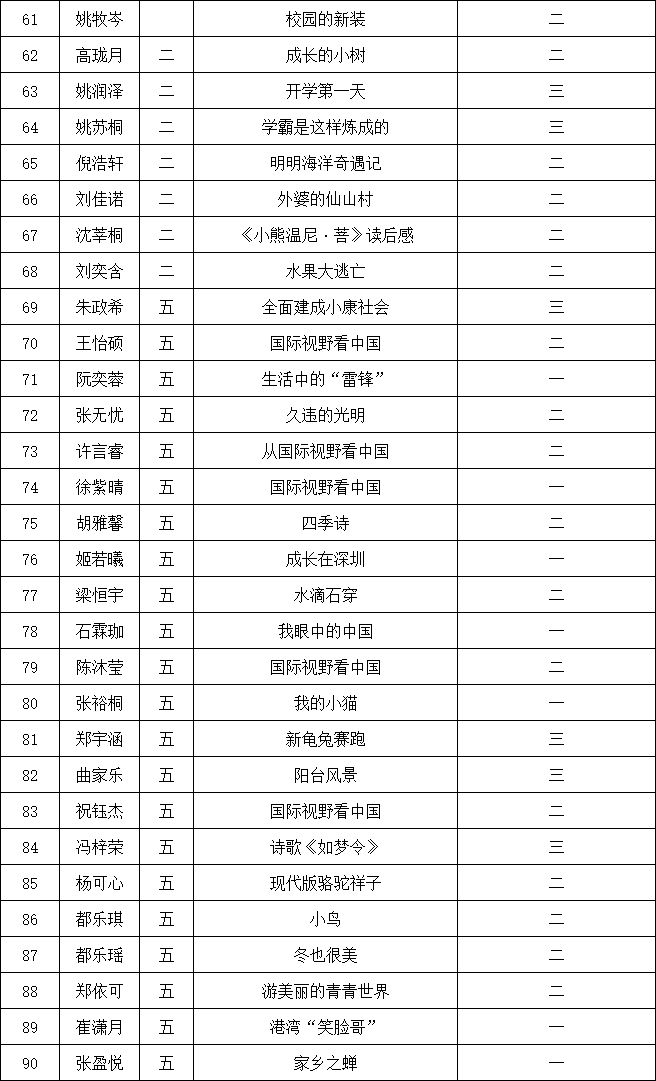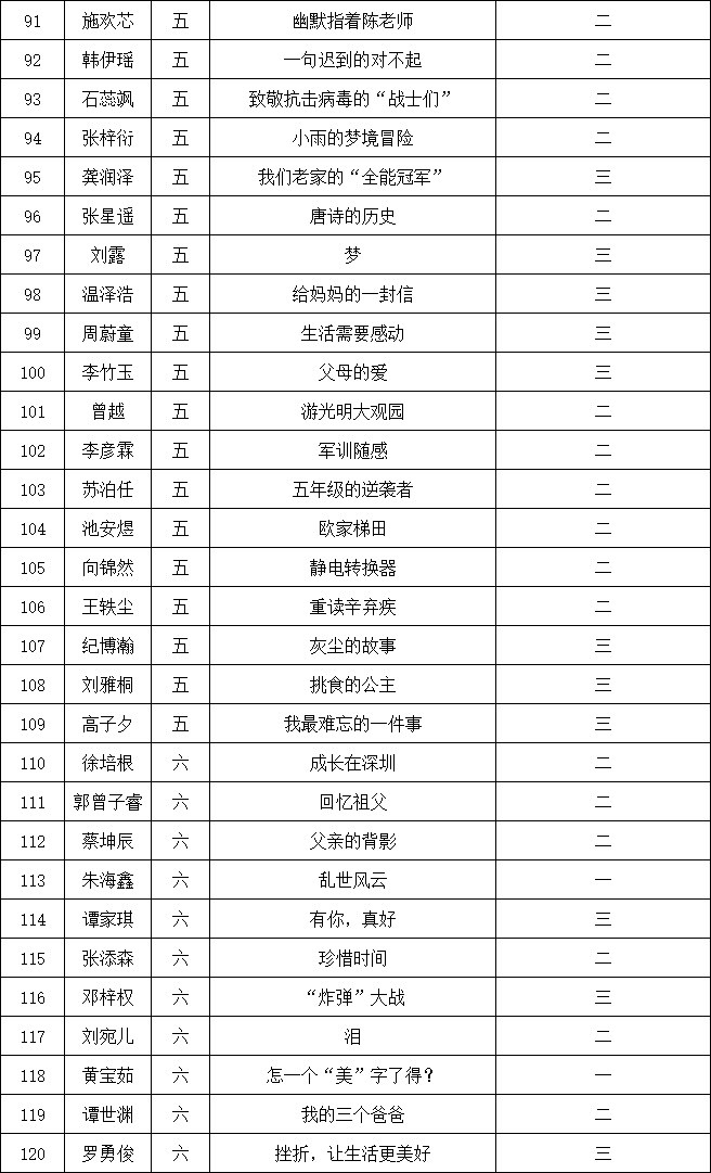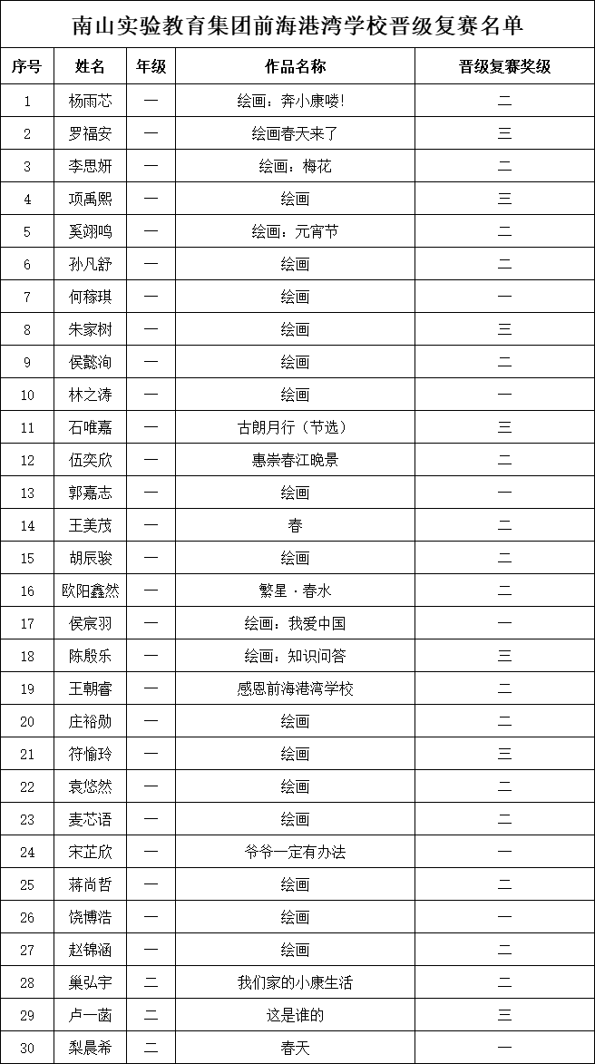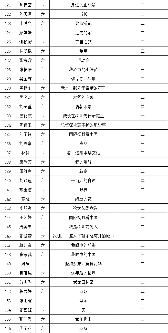 自2021年1月,活動征稿啟動以來,獲得了深圳市廣大中小學(xué)生、教師、文學(xué)愛好者的熱烈響應(yīng)積極參與,吸引了深圳百余所學(xué)校的上萬人關(guān)注報名?,F(xiàn)公布南山實驗教育集團前海港灣學(xué)校校園專場晉級復(fù)賽名單如下: