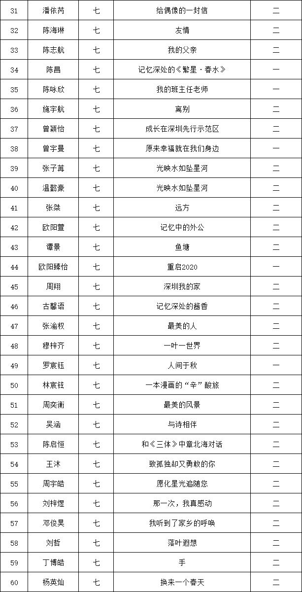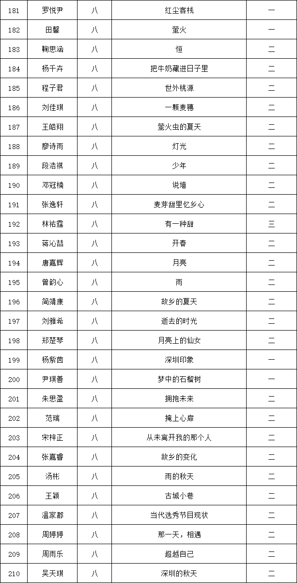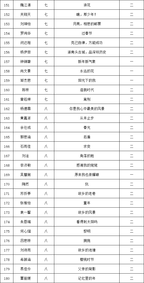 自2021年1月,活動征稿啟動以來,獲得了深圳市廣大中小學生、教師、文學愛好者的熱烈響應積極參與,吸引了深圳百余所學校的上萬人關注報名?,F(xiàn)公布龍華區(qū)外國語學校專場晉級復賽名單如下: