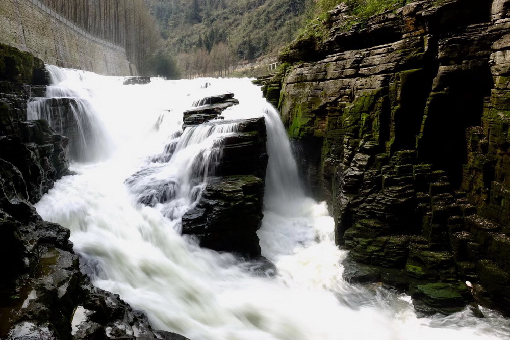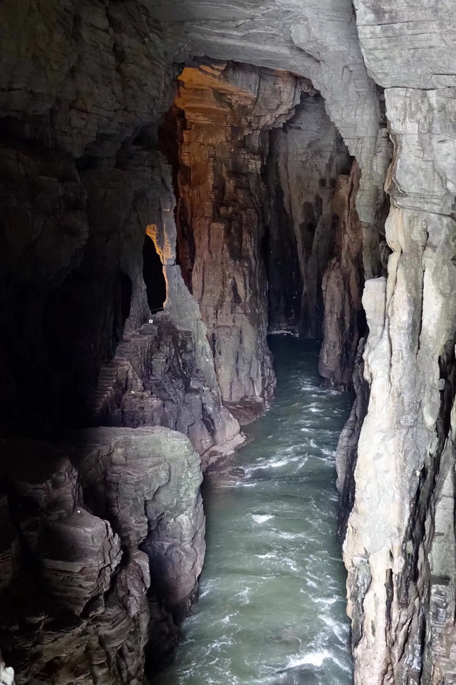 洞中景觀千姿百態(tài),神秘莫測。水洞口的臥龍吞江瀑布落差20余米,吼聲如雷,氣勢磅礴。李仁奇 攝