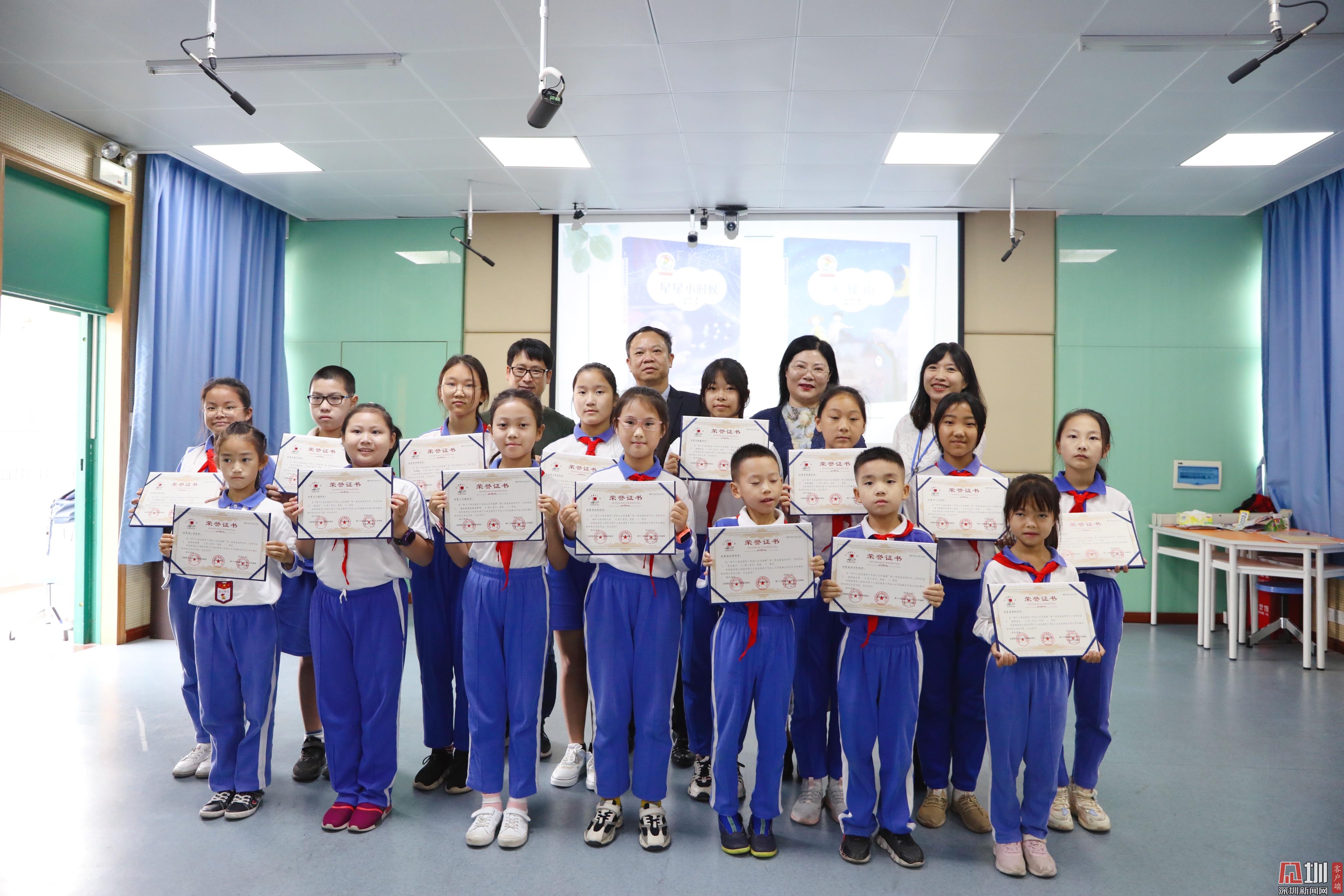 為白芒小學(xué)入選深圳市復(fù)評的孩子頒獎并合影